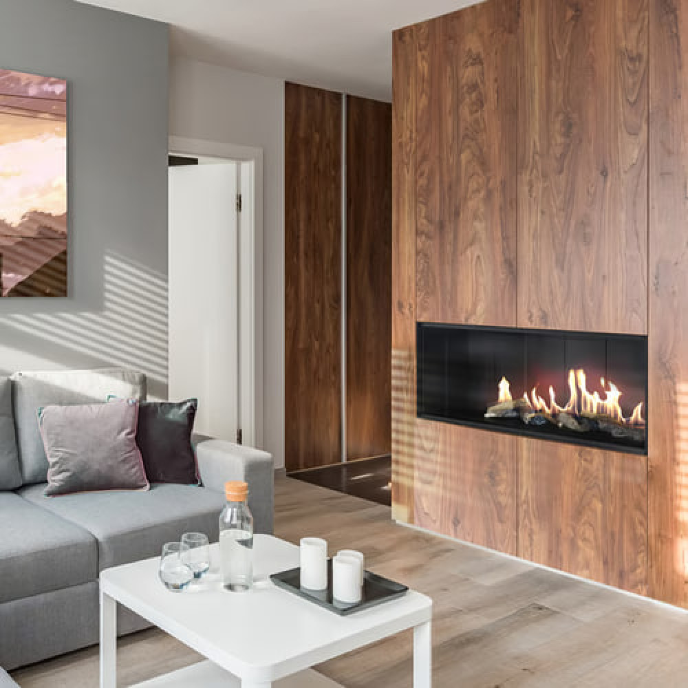 Инновационная элегантная газовая топка с горизонтальным и реалистичным созерцанием огня.