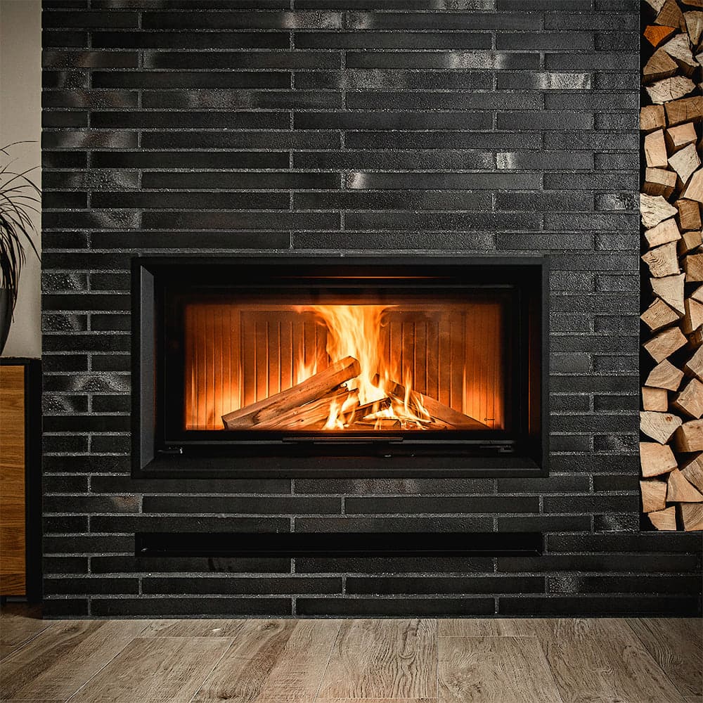 Декоративная керамика типа glass, что выдерживает температуру до 660 °C и предоставляет камину современный и элегантый вид, оптически увеличивает переднюю часть топки.