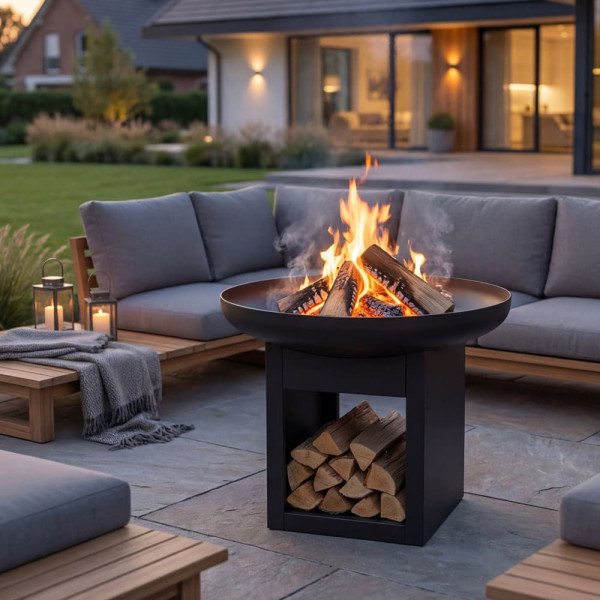 - Функциональность: садовый очаг с нишей для дров обеспечивает комфорт и порядок в зоне отдыха.