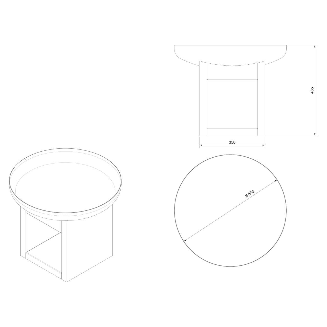 - Размеры: 600 × 485 мм (основание: 350 × 350 мм).