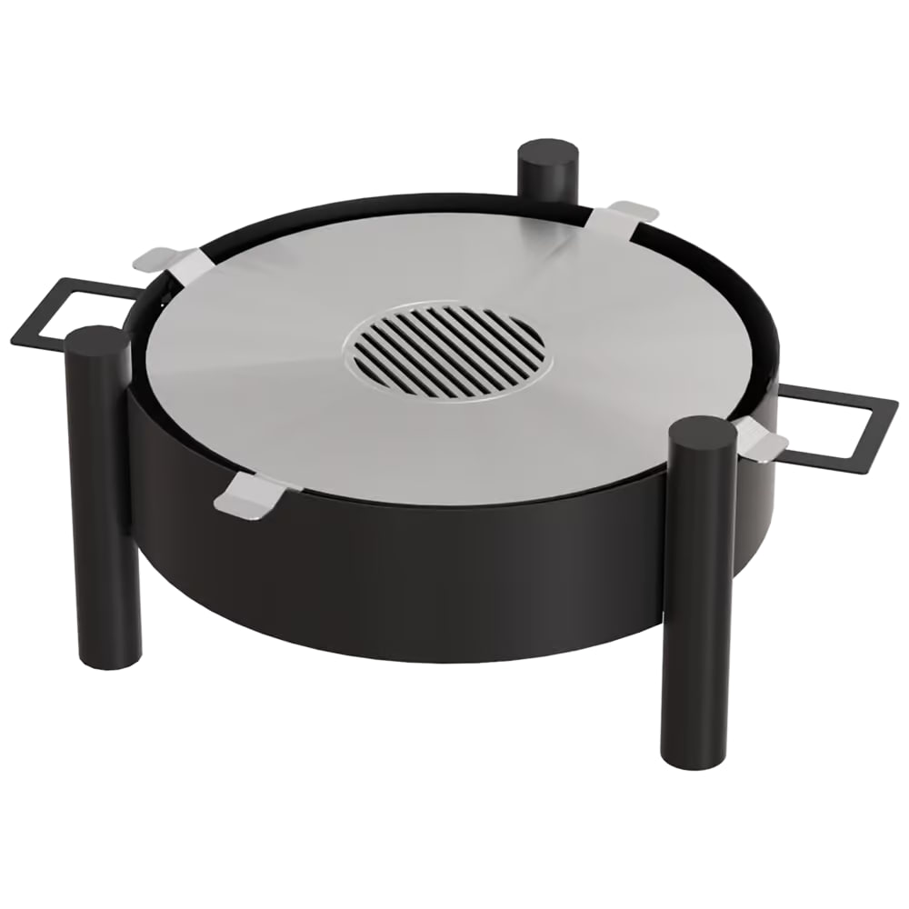 Плита вокруг чаши для дров позволяет не только жарить на гриле, но и варить, жарить на сковороде и подогревать еду. Она предотвращает пригорание и пересушивание блюд. Еда не имеет прямого контакта с дымом или открытым огнем.