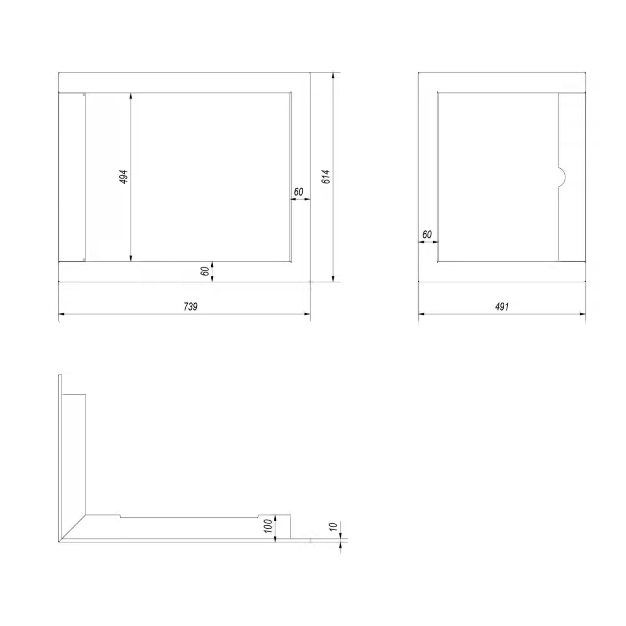 Современная декоративная стальная рамка для чугунной каминной топки SIMPLE M S BS (подходит для левого и правого камина) с боковым остеклением
