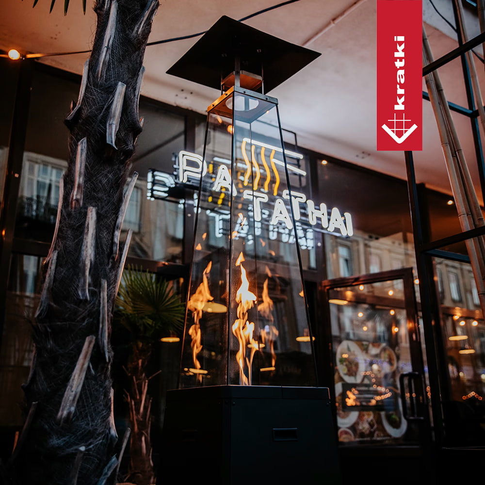 Обогреватель UMВRELLА заполняется жидкостным газом из бутылки, спрятанной в портале. Пламя закрывается в стеклянной камере, которая защищает нас от прямого контакта с огнем.
