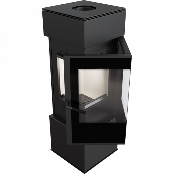 А ще в кутовій печі-каміні використовується система чистого скла (повітряна завіса), тобто повітря подається безпосередньо на скло через систему каналів, що розташовані з боків каміна. Таким чином, кисень надходить у верхню частину камери згоряння, де відбувається згоряння газів, що виникли в процесі спалювання дров, що додатково зменшує викид шкідливого в атмосферу.